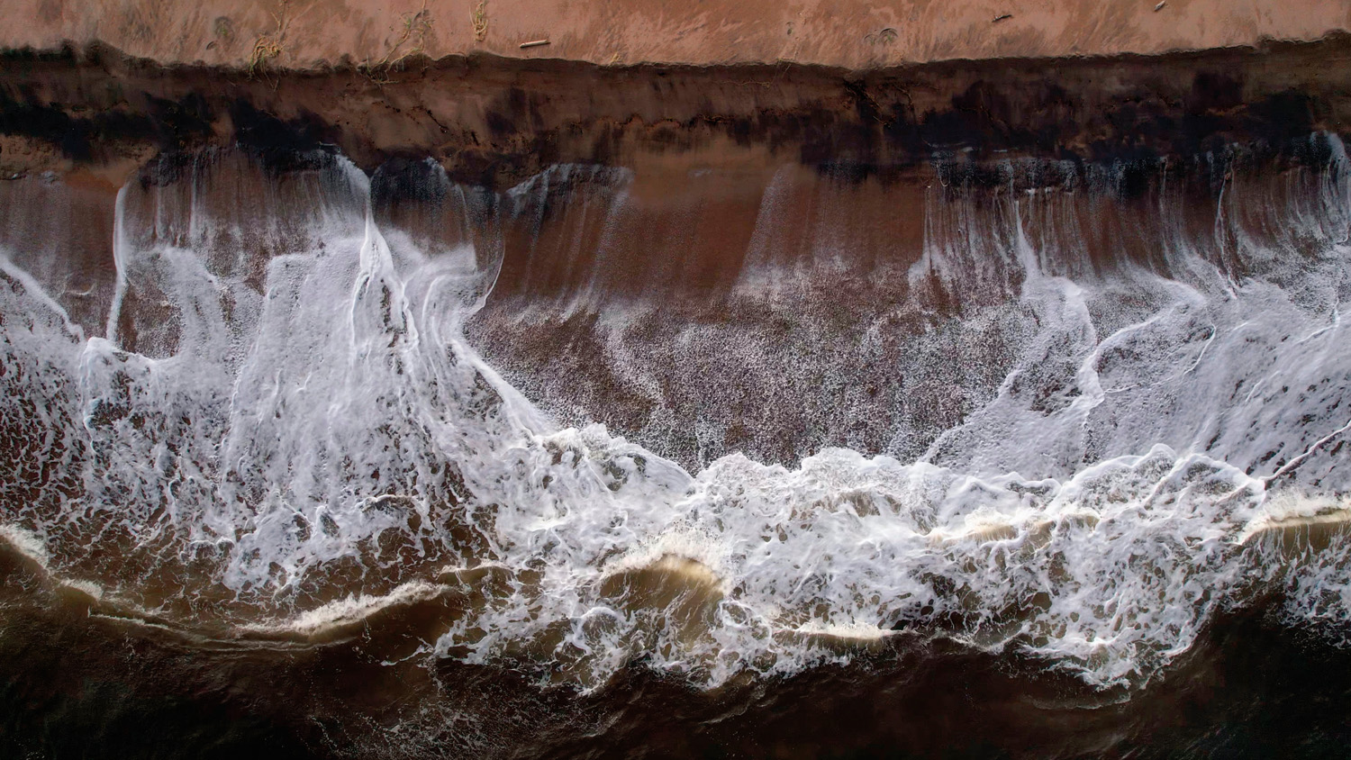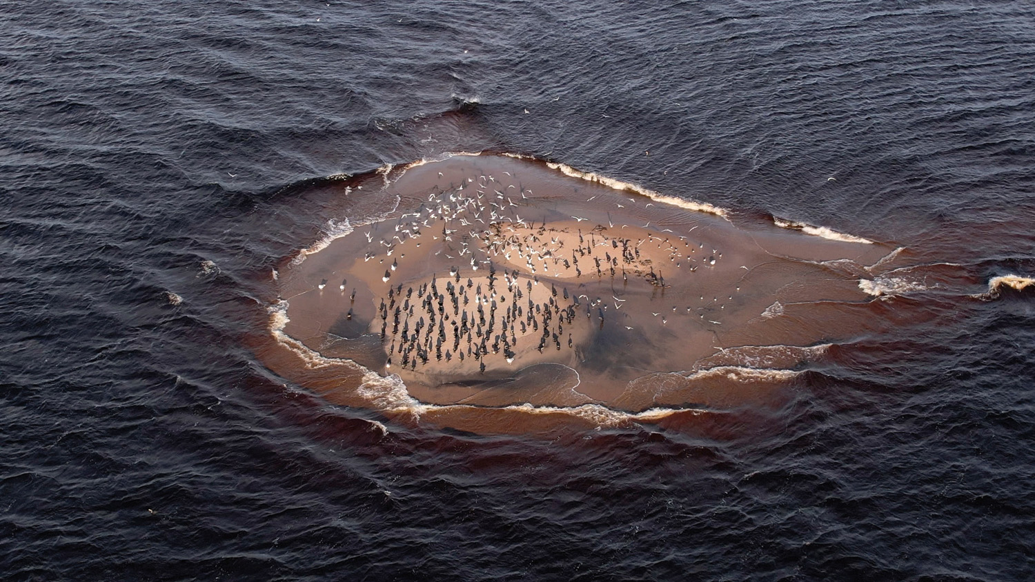 François parcourt le territoire accompagné d’un drone qui lui permet de survoler certains sites difficiles d’accès. Tel un prospecteur de l’usure de la planète, il dédie ses recherches à l’étude de l’érosion dans différents territoires. Il est servi, ici, car la pointe de Moisie connaît une érosion accélérée du côté de la rivière Moisie et du côté « mer », l’estuaire du fleuve Saint-Laurent. Ses observations se concrétisent en plans, photographies ou vidéos, souvent spectaculaires grâce au point de vue unique qu’il privilégie. Elles offrent des perspectives dévastatrices pour toute personne consciente de l’effritement de la planète, attaquée de toutes parts. Les paysages de la Côte-Nord observés et documentés par François ont un impact majeur sur les gens qui assistent à la présentation de sa pratique lors d’une soirée portes ouvertes ; ceux-ci découvrent la vitesse à laquelle la pointe de Moisie, lieu qui leur est si familier, s’effrite. Dans une séquence de trois images projetées l’une après l’autre, un traitement algorithmique expose clairement la parcelle des berges du Saint-Laurent disparue de manière soudaine et brutale. Le constat pour l’auditoire ce soir-là est dramatique. François est un témoin critique.